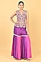 Featuring a purple peplum in chiffon crepe base with beads cutwork embroidery. It is paired with ombre embroidered gharara pants. Accentuate it with statement jhumkas and embellished juttis for a stylish ensemble, ideal for wedding festivities, festive gatherings or family functions.