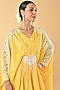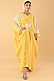 Featuring a yellow kaftan in chiffon crepe base with bandhani print, mirror and bead embroidery. It is paired with a lycra slip. Accentuate it with dangler earrings and heels for a festive occasion, haldi ceremony or family gathering.