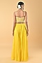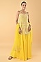 Featuring a yellow tunic in silk organza base with glass bead and floral motif embroidery. It is paired with flared palazzo pants and a dupatta. Accentuate it with statement earrings, a sleek braid, and block heels, ideal for haldi ceremonies or weddings.