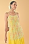 Yellow Silk Organza Glass Bead Embroidered Tunic Set