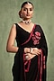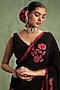 Featuring a black saree in crepe base with floral motifs patchwork hand embroidery. It is paired with a blouse. Accentuate it with statement jewellery and heels, perfect for festive occasions, weddings or pooja ceremony.