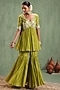 Green Silk Chanderi Resham Embroidered Sharara Set
