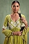 Featuring a green kurta in silk chanderi base with resham and aari embroidery. It is paired with sharara pants and an embroidered dupatta. Accentuate it with pearl jewellery and embellished juttis, perfect for festive gatherings and mehendi ceremony.