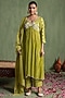 Lime Green Silk Chanderi Thread Hand Embroidered Kurta Set