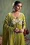 Featuring a lime green kurta in silk chanderi base with a v-neck and thread hand embroidery. It is paired with palazzo pants and an embroidered dupatta. Accentuate it with pearl jewellery and embellished juttis, perfect for festive gatherings and daytime celebrations.