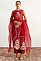 Featuring a maroon kurta in silk chanderi base with dori, badla, and pearl embroidery. It is paired with pants and a silk organza dupatta. Accessorize this kurta set with a pair of juttis, stud earrings, and a choker necklace for a festive look.