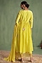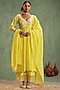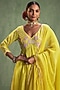 Featuring a sunny yellow kurta in silk chanderi base with a v-neck and floral embroidery. It is paired with silk chanderi and silk organza pants, including a silk chanderi dupatta. Accentuate it with pearl jewellery and embellished juttis, perfect for festive gatherings, haldi ceremony and daytime celebrations.