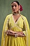 Featuring a yellow kurta in silk chanderi base with a V-neckline, machine and hand embroidery. It is paired with pants and an embroidered dupatta. Accentuate it with pearl jewellery and embellished juttis, perfect for festive gatherings and haldi ceremony.