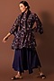 Featuring a blue mid-length shirt dress in chanderi base with bell sleeves, lace detailing and floral print. It is paired with matching silk flared pants, an inner and a belt.