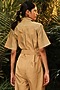Featuring a beige romper in poplin base with a collar, side pockets, and a fabric belt.