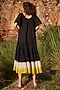 Featuring a black and mustard tiered midi dress in cotton base with an elasticated neckline and dip-dyed hemline.