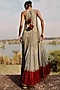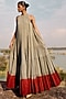 Featuring a cambridge blue gathered dress in mul base with side seam pockets and a brick red dip-dyed hemline. Style it with hoop earrings and heels for a complete look.