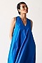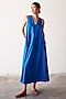 Featuring a cobalt blue handcrafted dress in poplin base with a v-neck, back zip opening, criss-cross back and side seam pockets.