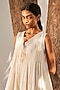 Featuring an ecru handcrafted dress in mul cotton base with pintuck, side seam pockets, pleats and hand embroidery.