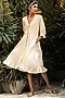 Featuring an off-white midi dress in mulmul cotton base with a waistband and frilled sleeves. It has an attached lining.