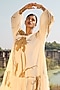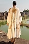 Featuring an off-white layered dress in mul base with lino print and gather detailing. Accentuate it with dangler earrings and heels for a complete look.