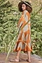 Featuring an orange and beige midi dress in cotton base with dyed print, buttoned flaps, frilled tiered bottom and elasticated cuffs.