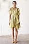 Featuring a pear green handcrafted wrap dress in cotton base with front tie-up, side seam pockets, and elasticated sleeves.