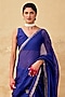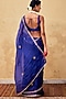 Featuring a royal blue saree in silk base with gota embroidery. It is paired with a chanderi embroidered blouse having a v-neck and tie-up detail. Accentuate with statement earrings and heels for a festive occasion.