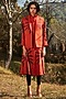 Featuring a rustic red dress in cotton mul base. It is paired with a reversible quilted jacket. Accentuate with statement earrings and heels for an evening look.