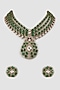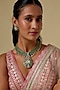 Featuring a gold finish long necklace studded with kundan polki and green stones, set in mixed metal. It is paired with a matching pair of earrings. Perfect choice for wedding, sangeet or engagement ceremonies.