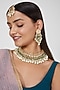 Gold Finish Kundan Polki Necklace Set With Maang Tika