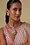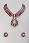 Featuring a gold finish long necklace studded with kundan polki and red stones, set in mixed metal. It is paired with a matching pair of earrings. Perfect choice for wedding, sangeet or engagement ceremonies.