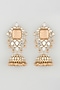Gold Finish Light Orange Stone Jhumka Earrings With Mangtikka
