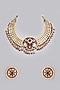 Featuring a gold foil finish necklace studded with red stones, set in mixed metal. It is paired with a matching pair of earrings.