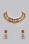 Featuring a gold foil finish necklace studded with red stones, It is paired with a matching pair of earrings.