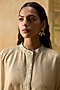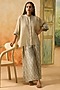 Featuring a beige shirt in silk base with three-quater sleeves and beads embellishments. It is paired with a wide-leg pants having ikkat pattern. Style it with silver stud earrings and wedges for festive occasion, sangeet or cultural celebrations.