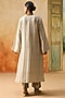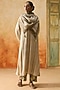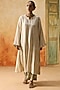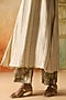 Featuring a beige A-line kurta in silk base with print and beads embroidery. It is paired with straight pants and a scarf having latkans detail. Style it with polki stud earrings and wedges for festive occasion, sangeet or cultural celebrations.