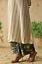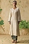 Featuring a beige A-line kurta in silk base with print and beads embroidery. It is paired with pants having floral pattern and a scarf having latkans detail. Style it with polki stud earrings and wedges for festive occasion, sangeet or cultural celebrations.
