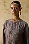 Featuring a brown long kurta in silk base with bell sleeves and round neckline, including bandhani print, beads and floral motif embroidery. It is paired with printed pants. Style it with polki stud earrings and wedges for festive occasion, sangeet or cultural celebrations.