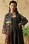 Charcoal Grey & Burgundy Silk Ikkat Asymmetrical Overlay Jacket