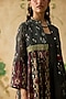 Featuring a charcoal grey and burgundy asymmetrical overlay jacket in silk base with front plackets, floral and ikat detailing, including motif embroidery. Style it with silver stud earrings and wedges for festive occasion, brunch parties or cultural celebrations.