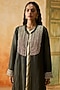Charcoal Grey Silk Beads Embellished Jacket Set
