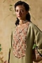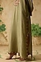 Featuring a green straight kaftan in silk base with a slit, bandhani print and tie-up detail. Style it with polki stud earrings and wedges for festive occasion, sangeet or cultural celebrations.