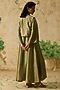 Featuring a green tunic in silk base with bell sleeves and beads detailing. It is paired with a cropped overlay sleveless jaket having thread, beads and sequins embroidery. Style it with silver stud earrings and wedges for festive occasion, sangeet or cultural celebrations.