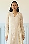 Featuring an ivory inner gathered dress in cotton base. It is paired with a cotton jacket having applique work. Style this dress with nude sandals and delicate earrings for festive brunches or day functions.