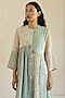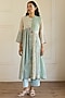 Featuring a light blue kurta in cotton and chanderi silk base with print. It is paired with a cotton inner and pants. Style this dress with nude sandals and delicate earrings for festive brunches or day functions.