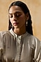 Featuring an off-white shirt in silk base with three-quater sleeves and beads embellishments. It is paired with a wide-leg pants having ikkat pattern. Style it with silver stud earrings and wedges for festive occasion, sangeet or cultural celebrations.