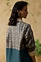 Featuring a teal and beige reversible jacket in silk base with ikkat and bandhani detailing. It is paired with a printed shirt and pleated pants. Style it with silver stud earrings and wedges for festive occasion, sangeet or cultural celebrations.