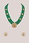 Featuring a gold finish long pendant necklace studded with emerald green beads and kundan polki, set in 92.5 sterling silver. It is paired with a matching pair of earrings. Add a touch of sparkle to your ensemble, perfect for wedding ceremonies or festive celebrations.