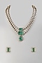 Featuring a gold finish layered necklace studded with kundan polki and emerald stones, set in 92.5 sterling silver. It is paired with a matching pair of earrings. Perfect for grand occasions like weddings and traditional festivities.