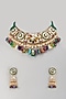 Gold Finish Kundan Polki & Multi-Colored Choker Necklace Set In Sterling Silver
