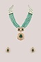 Featuring a gold finish long necklace studded with pearls, kundan polki and emerald stones, set in 92.5 sterling silver. It is paired with a matching pair of earrings. Add a touch of sparkle to your ensemble, perfect for wedding ceremonies or festive celebrations.