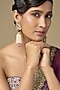 Featuring a pair of gold finish dangler earrings studded with kundan polki, ruby, pearls and beads, set in copper. Add a touch of sparkle to your ensemble, perfect for wedding ceremonies, special occasions or festive celebrations.