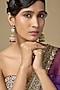 Featuring a pair of gold finish jhumka earrings studded with kundan polki, ruby drops and pearls, set in copper. Add a touch of sparkle to your ensemble, perfect for wedding ceremonies, special occasions or festive celebrations.