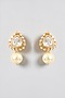 Gold Finish Moissanite Polki & Pearl Drop Stud Earrings In Sterling Silver